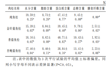 表3 不同菌菇魚松主要營養成分的檢測結果