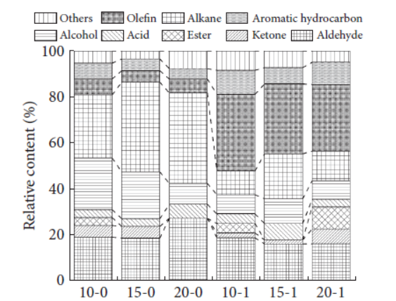 與對照組(10-0、15-0和20-0)相比,孜然組(10-1、15-1和20-1)中醛類、醇類和烷烴類相對含量減少,酯類和烯烴類相對含量增加??狙蛉怙炛械闹饕獡]發性風味化合物為醛類,包括戊醛、己醛、庚醛、辛醛、壬醛、癸醛、苯甲醛、(E)-2-辛烯醛等。加入孜然后,己醛含量顯著減少,這可能是由于孜然的抗氧化作用減少了關鍵醛類的氧化;孜然醛和茴香醛的含量明顯增加,這些是孜然中最豐富的成分,可能是由于在烤制過程中加入了孜然,使羊肉散發出柑橘和辛辣等香味。